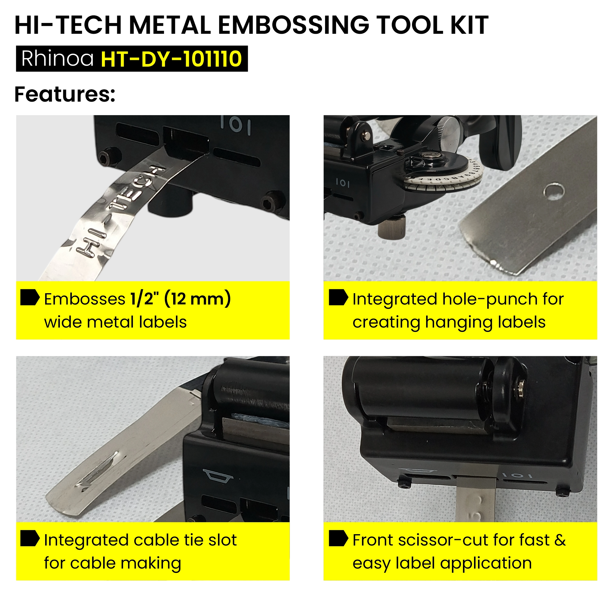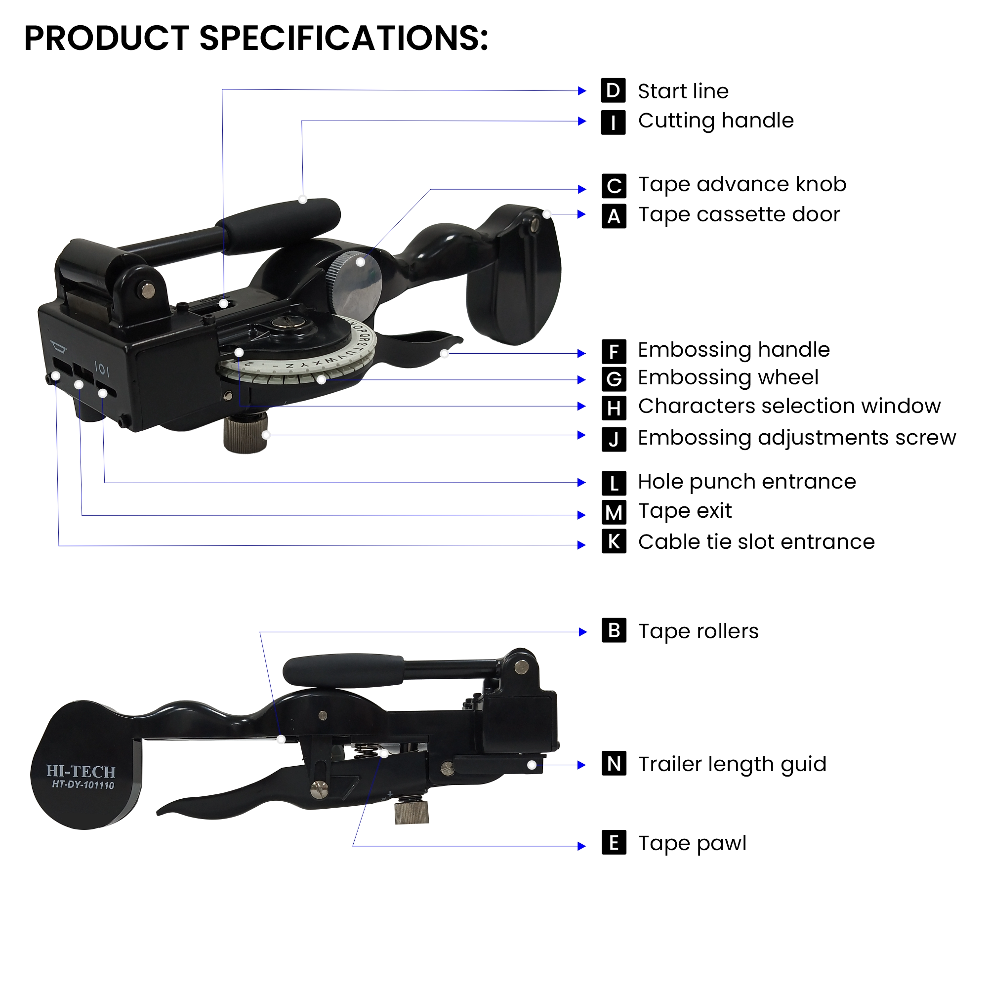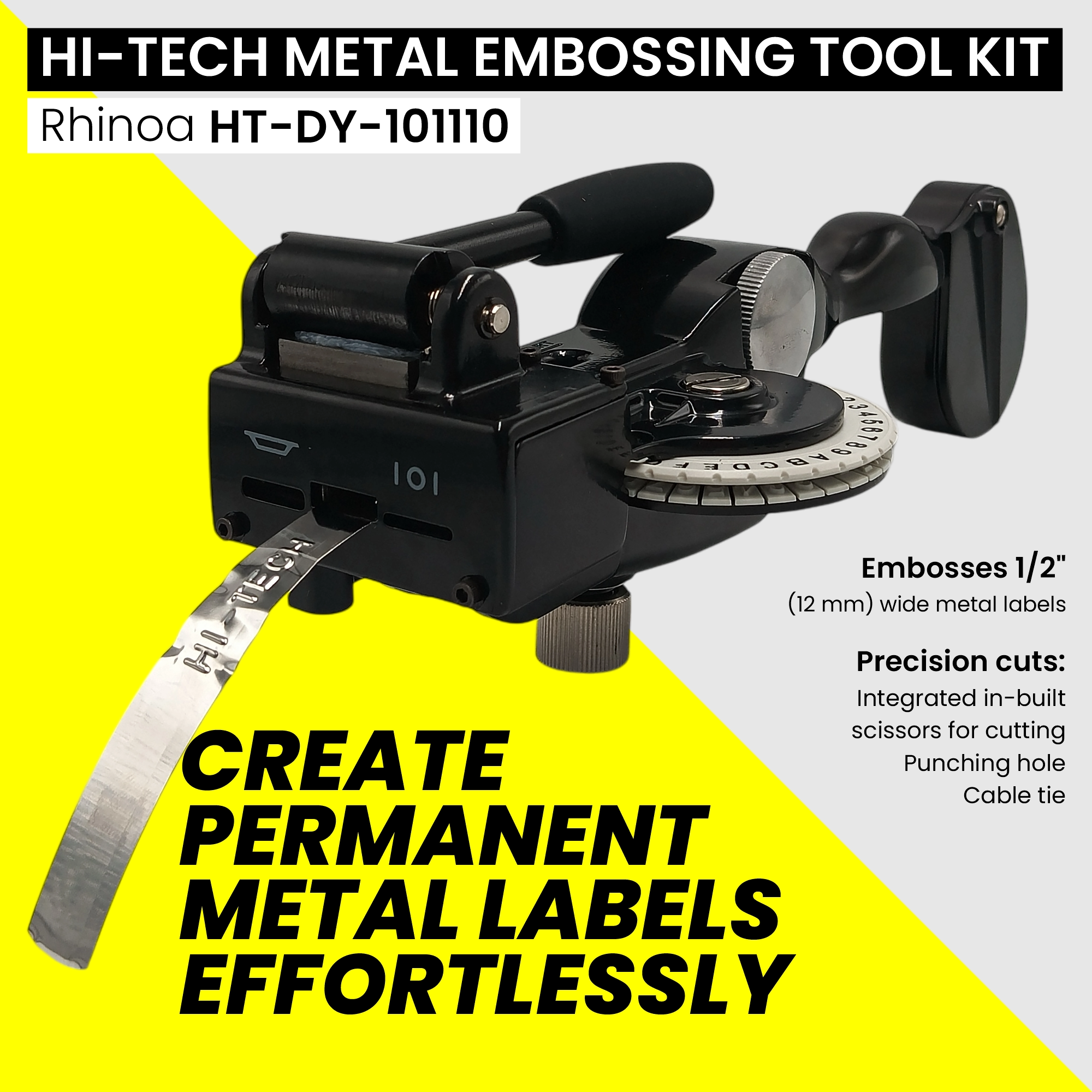 The HI-TECH Embossing Machine is a heavy-duty, manual solution designed for permanent identification on metal plates. Engineered for durability and precision, this machine allows you to create legible, raised characters on stainless steel and aluminum tags, ensuring your cable markings remain readable even in the harshest industrial environments.