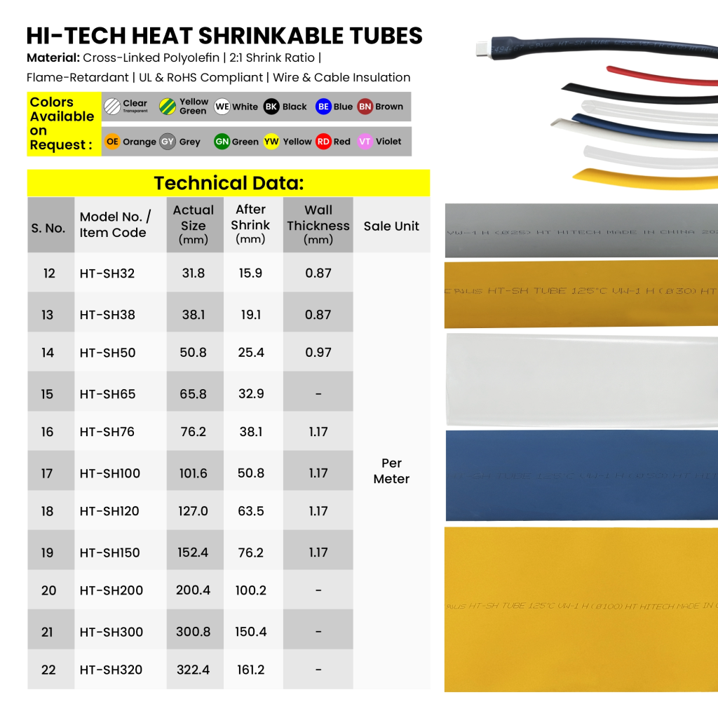 HI-TECH Shrinkable Tubes combines the advantages of heat-shrinkable sleeving and moulded shapes, having the facility to be wrapped around irregular shapes and profiles. The tape can be wound around a component, at which point it will lightly adhere to itself, heat is then applied and the tape will shrink and present a fully molded appearance.