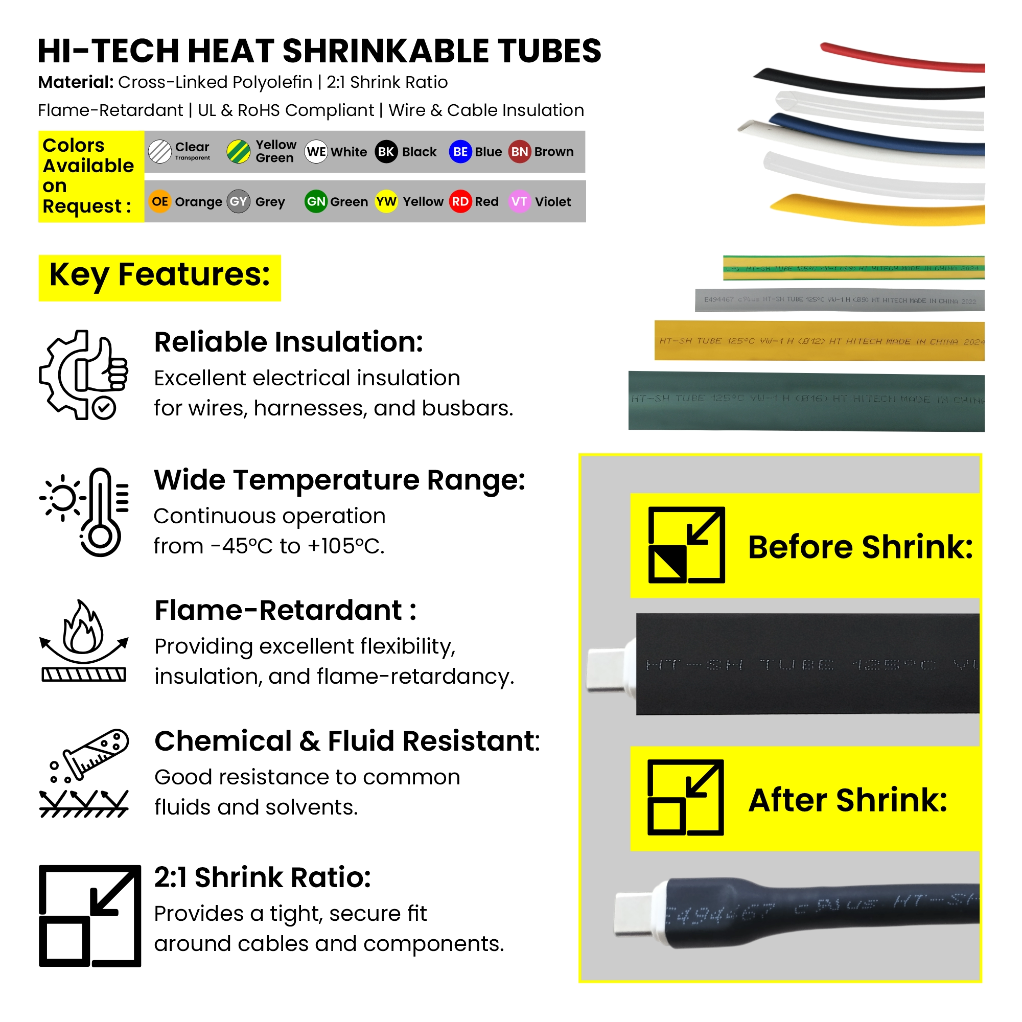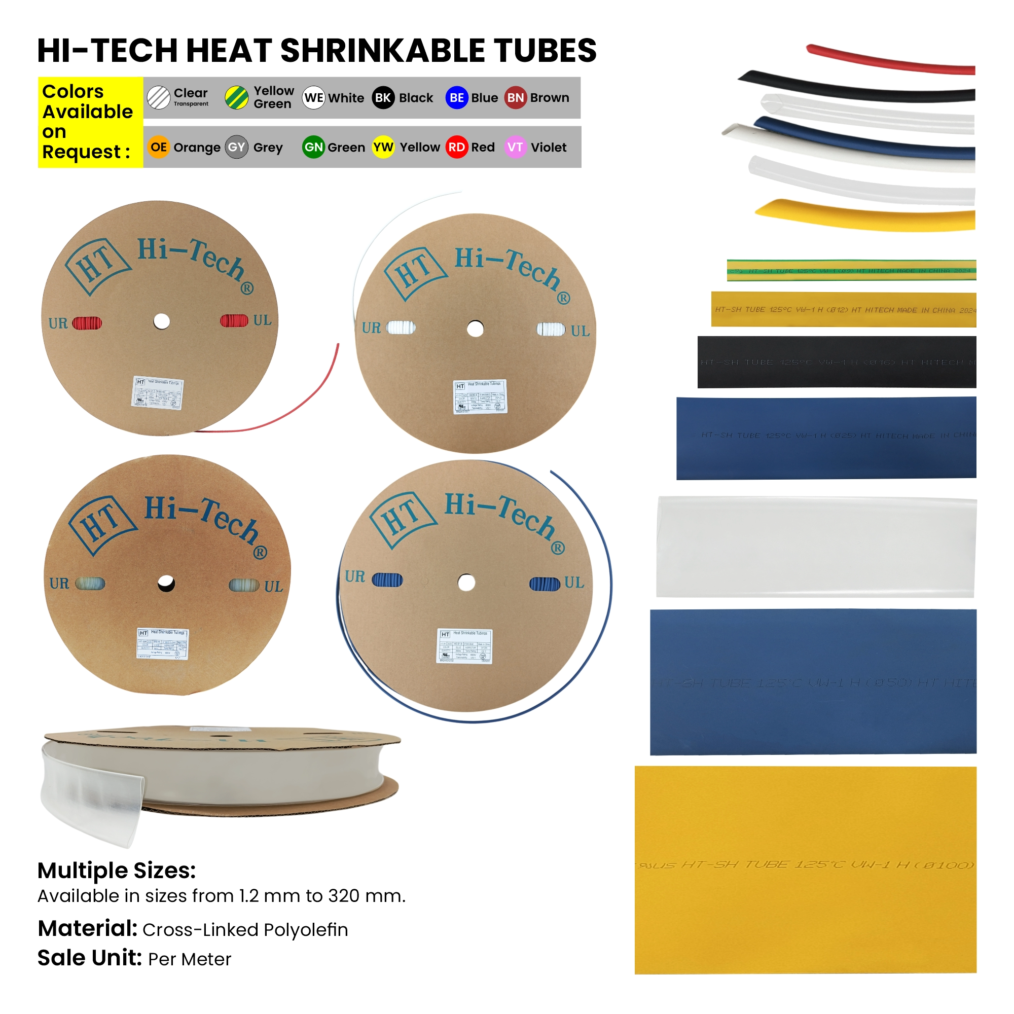 HI-TECH Shrinkable Tubes can be used for repairing electrical wires, tubing, and other similar items. When heated to above 100°C (212°F), this tape will shrink to more than 30% of its original size, providing a waterproof repair for your chosen component. This adhesive insulation tape also protects against corrosion. Constructed with an environmentally friendly heat-melted adhesive. Continuous operating temperature: -55°C to 105°C (-67°F to 221°F).